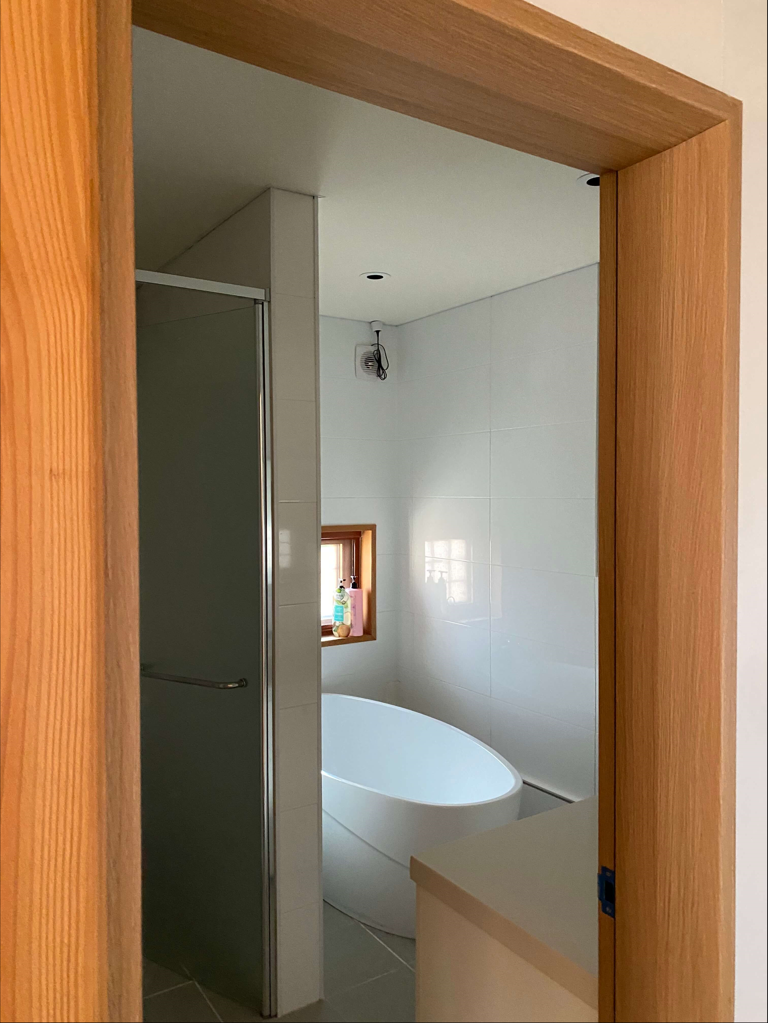 화장실에는 아담한 욕조가 있어서 편안하게 힐링하기 좋았습니다. 숙소에 화장실이 4개나 있어서 부담없이 이용할수 있어서 좋았는데요. 씻을 공간이 많아서 반신욕도 하고 수건도 인원수에 맞게 제공되고 좋은 추억이네요.