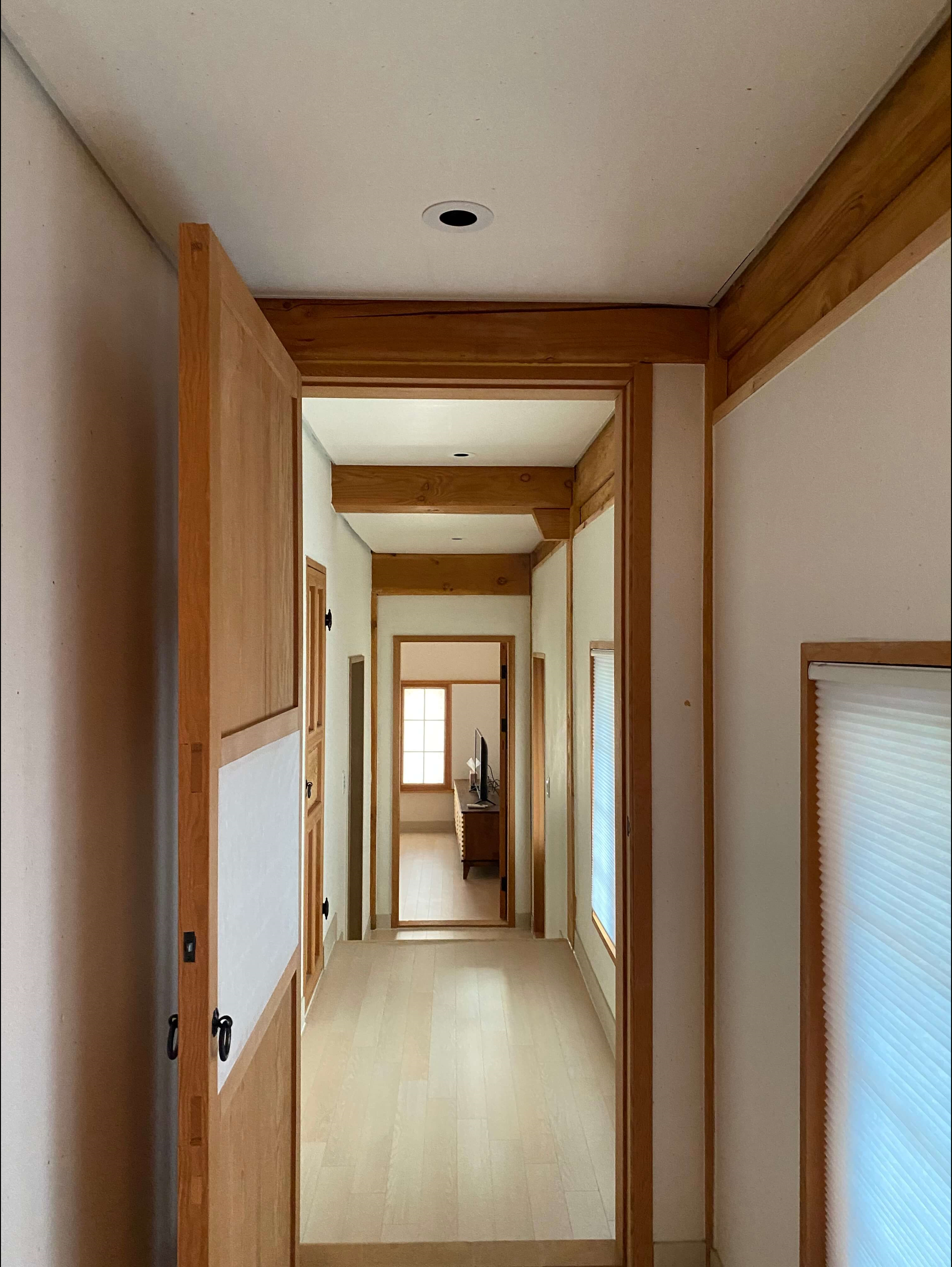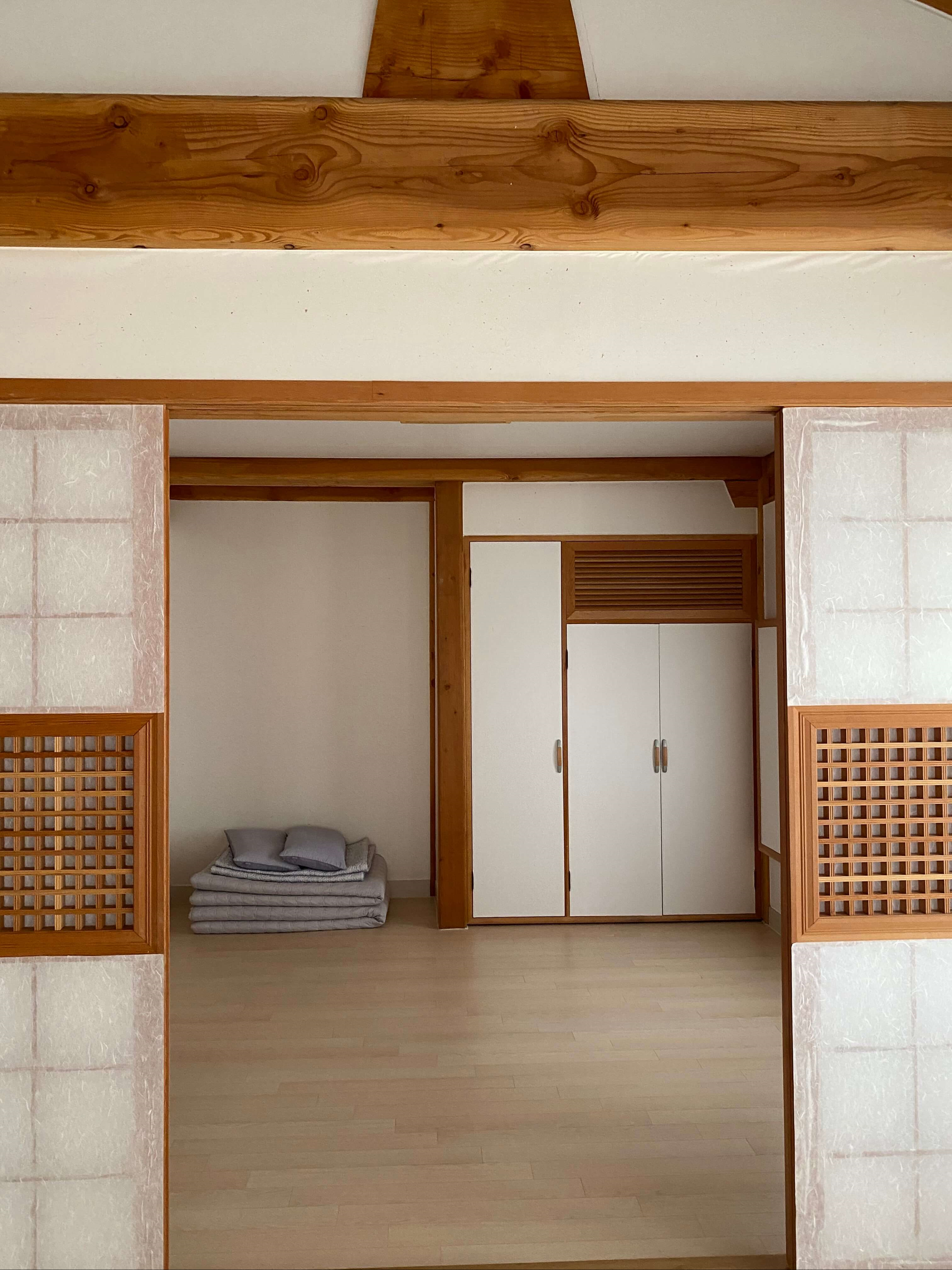정갈하게 꾸며진 숙소는 한옥 분위기를 너무 잘꾸며 놓었더라구요. 이런 방들이 4개씩이라서 넉넉하게 자리잡고 편안하게 쉴수가 있었습니다.